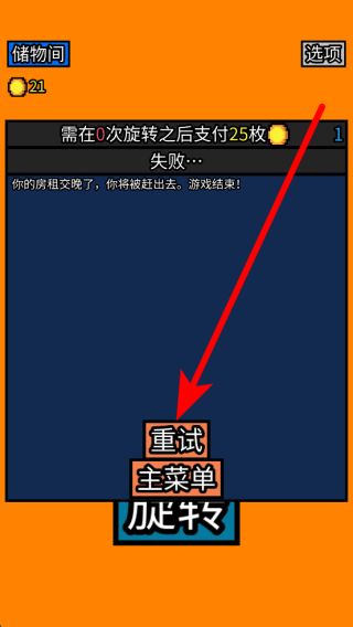 4、若因房租交晚導(dǎo)致失敗,可選擇重試重新開始,再次嘗試通過旋轉(zhuǎn)獲取足夠金幣按時(shí)支付房租。