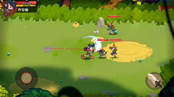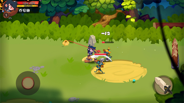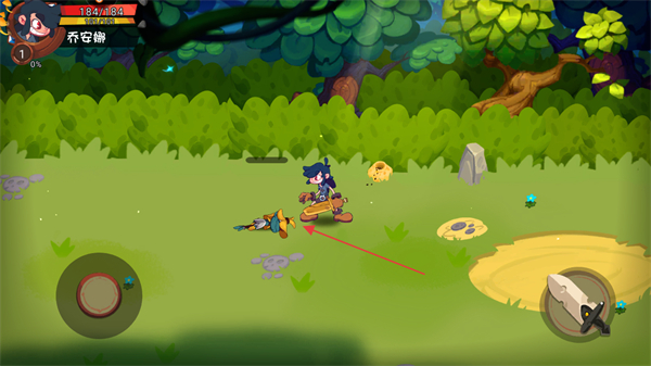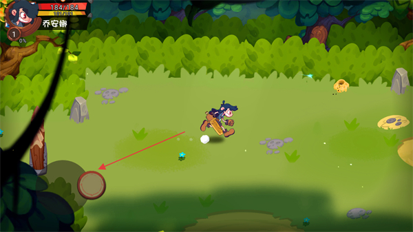 1、進(jìn)入游戲,通過屏幕左下角的虛擬搖桿控制角色如喬安瀚移動(dòng)。