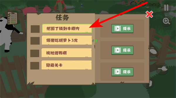 3、像喂豬吃胡蘿卜的任務(wù),要先找到胡蘿卜,然后引導豬去吃,累計完成指定次數(shù),逐步達成任務(wù)要求。