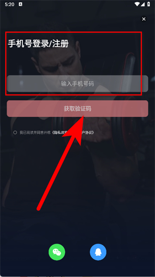 3、在手機(jī)號(hào)登錄注冊(cè)頁(yè)面,輸入手機(jī)號(hào),勾選后,點(diǎn)擊獲取驗(yàn)證碼。