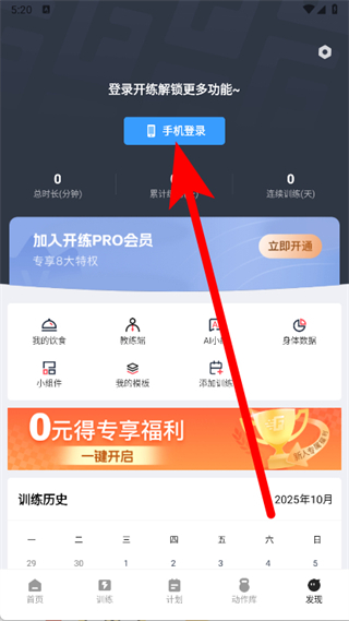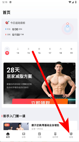 1、打開(kāi)開(kāi)練APP,點(diǎn)擊底部發(fā)現(xiàn)。