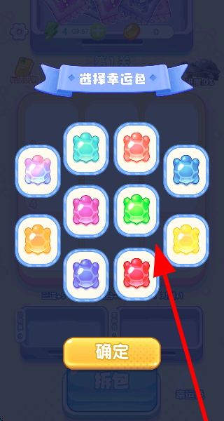 2、玩家開始選擇幸運包,界面有多種顏色的幸運包,選中心儀的,點擊確定,開啟拆包前的準備。