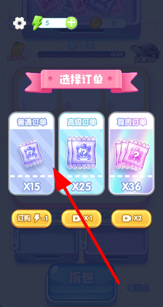 1、在訂單選擇界面,挑選普通、高級或尊貴訂單,不同訂單對應(yīng)不同數(shù)量的包裹,選好后進入下一步。