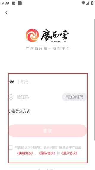 3、在登錄頁(yè)面,輸入信息勾選協(xié)議后,點(diǎn)擊登錄,完成登錄操作。