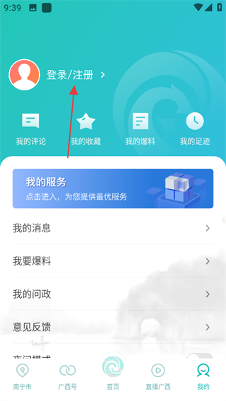 1、進(jìn)入廣西云首頁(yè),點(diǎn)擊底部我的,進(jìn)入個(gè)人頁(yè)面。