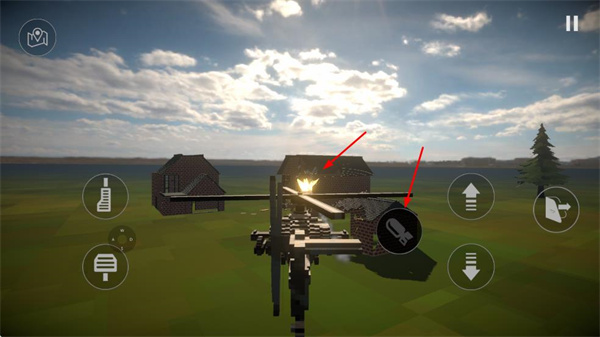 2、操作直升機時,使用攻擊按鈕發(fā)射彈藥,對建筑造成傷害,逐步摧毀目標。