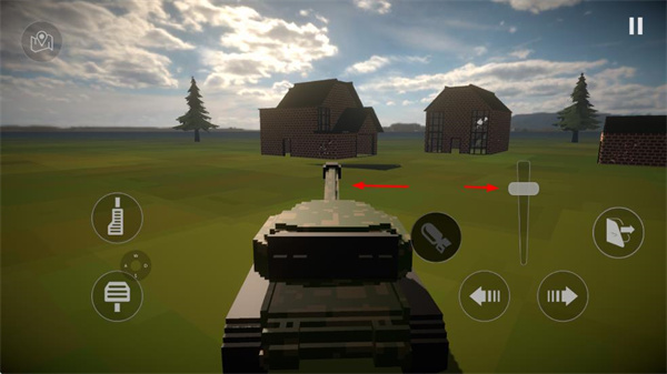 3、還可操控坦克,通過方向按鈕移動坦克,瞄準brick建筑。
