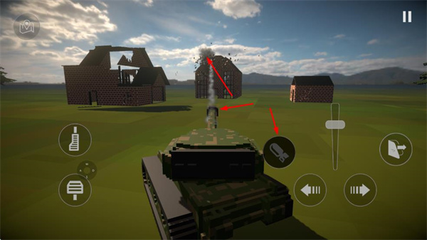 4、操作坦克時,使用攻擊按鈕發(fā)射炮彈,對建筑造成大范圍破壞,推進游戲進程。