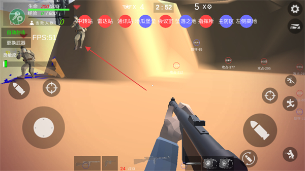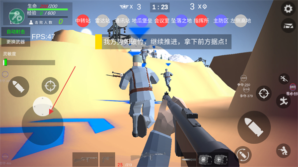3、發(fā)現(xiàn)敵人后,瞄準(zhǔn)并點(diǎn)擊射擊按鈕,消滅敵方士兵。