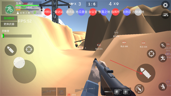 4、遭遇大量敵人時(shí),點(diǎn)擊手雷按鈕,利用手雷進(jìn)行范圍攻擊。