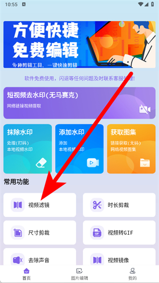 1、打開免費視頻去水印擦除大師,點擊視頻濾鏡。