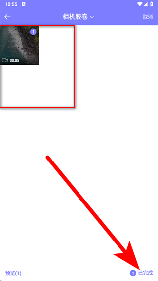2、在相機膠卷中選擇視頻,點擊已完成。