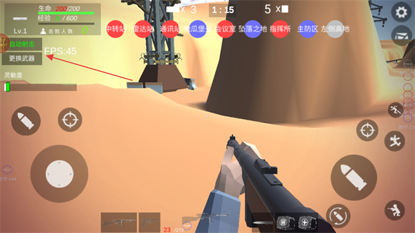 4、開啟自動(dòng)射擊按鈕,方便在移動(dòng)中攻擊敵人,提升戰(zhàn)斗效率。
