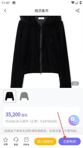 3、在商品詳情頁面,點擊立即購買,進入商品規(guī)格選擇頁面。