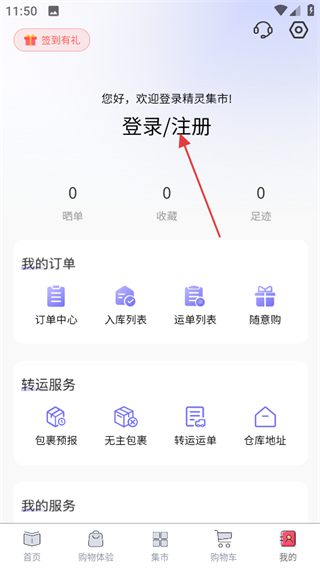 1、進入精靈集市首頁,點擊底部我的,進入個人頁面。