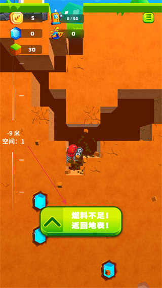3、當(dāng)提示燃料不足!返回地表時,及時返回補(bǔ)充燃料。