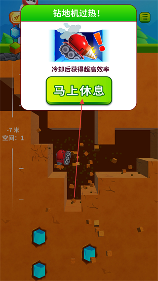 4、若出現(xiàn)鉆地機(jī)過熱!提示,點(diǎn)擊馬上休息讓鉆機(jī)冷卻。