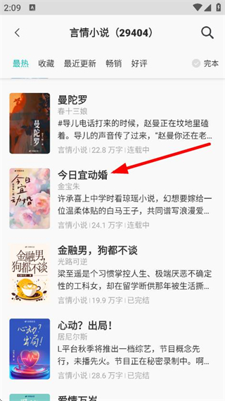 2、在言情小說(shuō)列表頁(yè)面,點(diǎn)擊要閱讀的小說(shuō),進(jìn)入小說(shuō)詳情頁(yè)面。