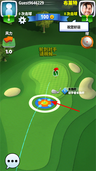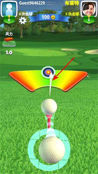 3、觀察場(chǎng)地與風(fēng)力,在對(duì)戰(zhàn)場(chǎng)景中,觀察高爾夫場(chǎng)地的地形和風(fēng)力情況,為擊球做準(zhǔn)備。