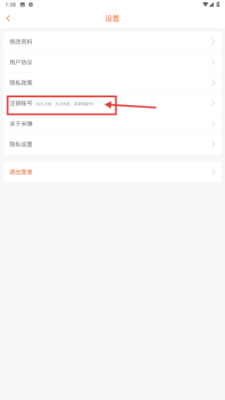 3、在設(shè)置界面,點(diǎn)擊注銷賬號(hào)選項(xiàng),觸發(fā)注銷確認(rèn)彈窗。