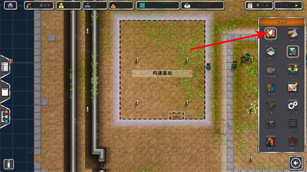 4、使用建筑工具,在工具欄中選擇相應(yīng)的建筑工具如墻壁工具,用于監(jiān)獄建筑的建造。