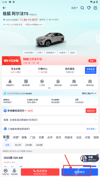 3、在車型詳情頁面,點擊查落地價按鈕,獲取該車型的詳細(xì)落地價格信息。