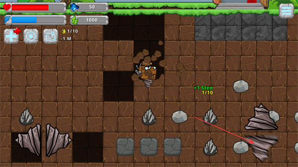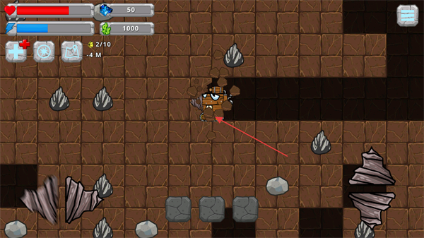 4、關(guān)注屏幕上方的資源數(shù)值如紅心代表生命值、藍(lán)色鉆石等,合理利用資源保障挖掘進(jìn)程。
