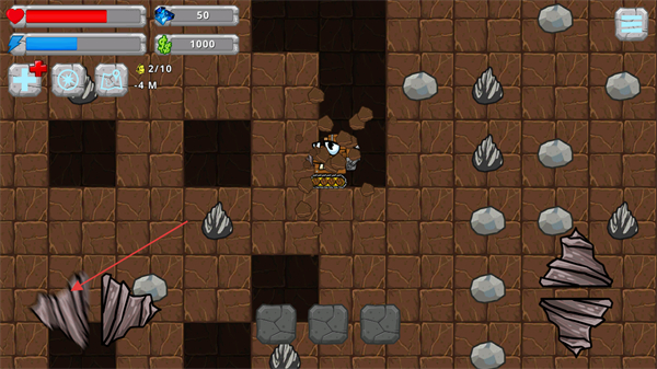 3、挖掘時(shí)會(huì)遇到石頭等障礙物,規(guī)劃挖掘路線,避開或擊碎它們以持續(xù)向下挖掘。