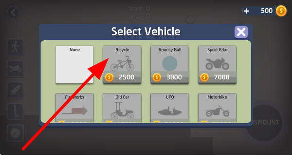 1、進入選車界面,能看到自行車、彈跳球等不同載具,選擇喜歡的載具,花費對應金幣就能使用,開啟趣味挑戰(zhàn)。