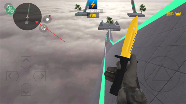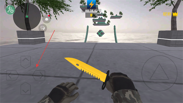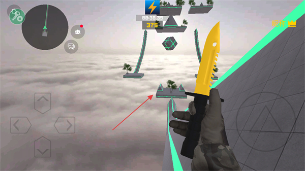 1、用左側(cè)方向鍵操控角色,準(zhǔn)備向空中平臺(tái)跳躍。