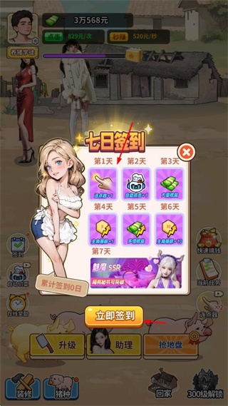 4、參與七日簽到活動(dòng),可領(lǐng)取連點(diǎn)器、自動(dòng)點(diǎn)擊、大量收益、主角等級(jí)提升、多倍收益、稀有秘書(shū)等獎(jiǎng)勵(lì),點(diǎn)擊立即簽到領(lǐng)取每日獎(jiǎng)勵(lì)。