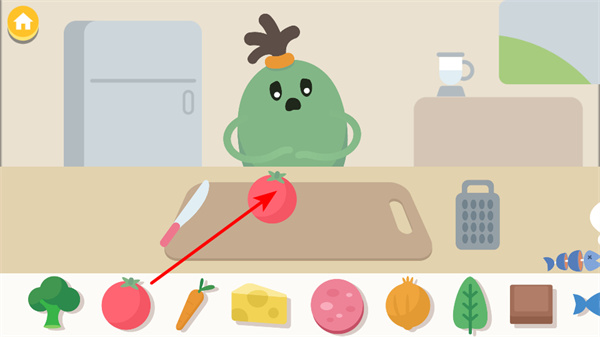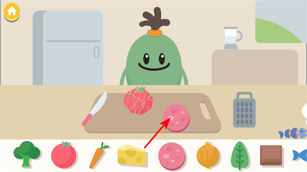 1、選擇食材,在食材欄中選擇需要的食材,將其放置到砧板上,準(zhǔn)備進(jìn)行烹飪操作。