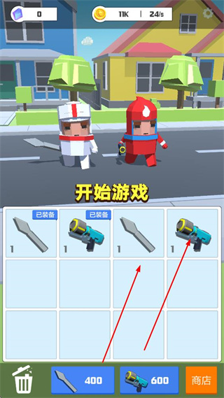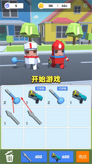 1. 可選擇并裝備不同武器,消耗金幣解鎖升級,提升戰(zhàn)斗能力。