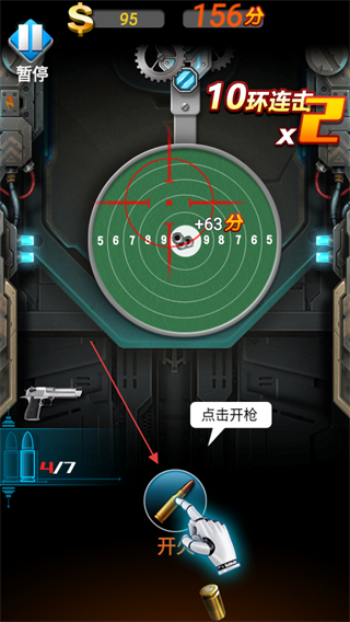 3、射擊過程中,瞄準靶心,爭取打出高環(huán)數(shù),獲取更高分數(shù),觸發(fā)如10環(huán)連擊x2效果。