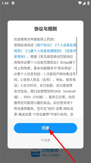 1、在協(xié)議與規(guī)則彈窗中,點(diǎn)擊同意,進(jìn)入APP主界面。