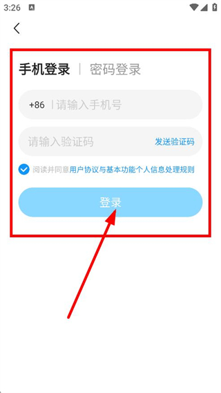 4、選擇手機(jī)登錄,輸入手機(jī)號、驗(yàn)證碼后,點(diǎn)擊登錄,完成登錄操作。