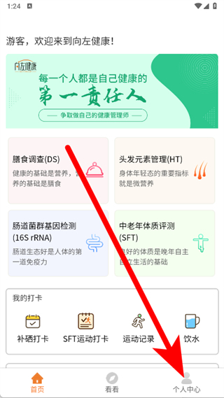 1、打開向左健康,點(diǎn)擊底部個(gè)人中心。