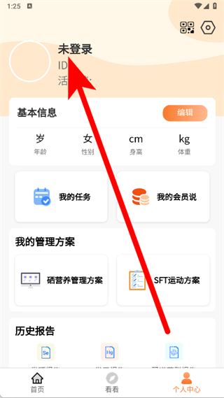 2、在個(gè)人中心頁面,點(diǎn)擊未登錄。