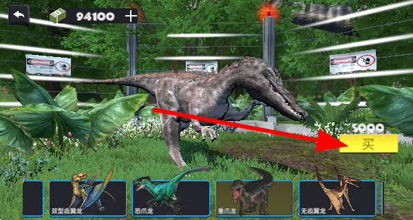 2、進(jìn)入商店后,用獲取的鈔票購買選擇不同種類的恐龍,不同恐龍有不同的屬性和能力,助力游戲。