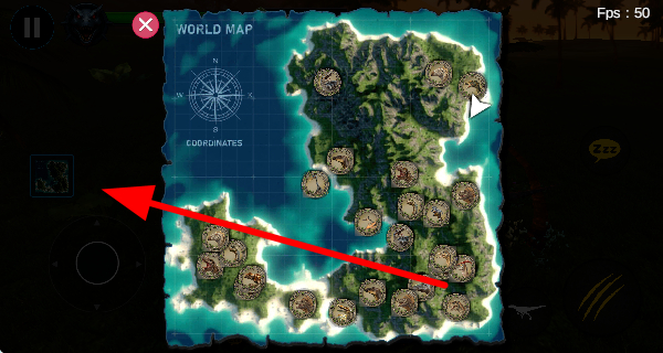 4、查看大地圖,了解游戲世界的整體布局和各個(gè)區(qū)域的分布,方便規(guī)劃恐龍的行動路線,探索世界。