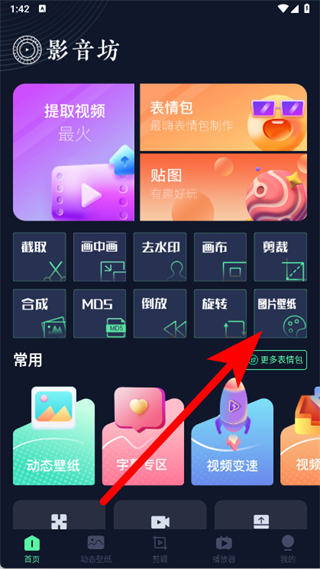 1、打開影音坊,在首頁,點擊圖片壁紙功能。