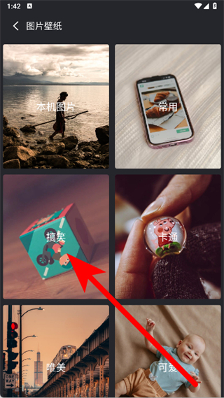 2、進入圖片壁紙頁面后,選擇搞笑分類。