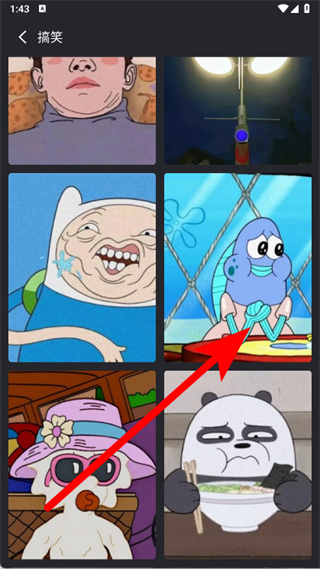 3、在搞笑分類里,點擊選中想要的圖片素材。