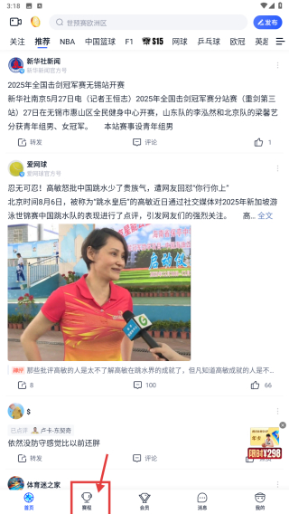 1、打開體育賽事應(yīng)用,點(diǎn)擊底部賽程選項(xiàng),進(jìn)入賽程頁面。