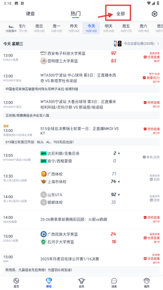 2、在賽程頁面,選擇全部分類,瀏覽全品類賽事列表。