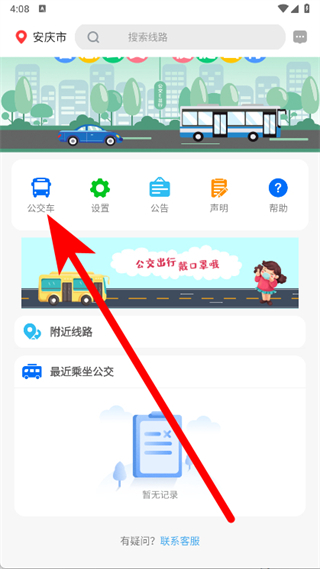 2、城市設(shè)置好后,點(diǎn)擊界面中的公交車選項(xiàng)。