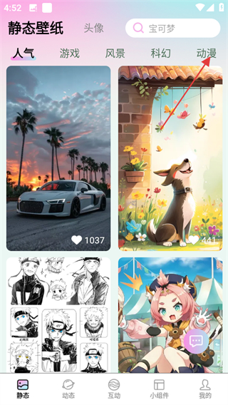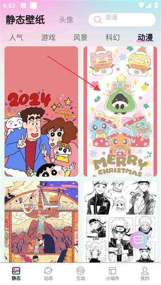1、進(jìn)入靜態(tài)壁紙頁(yè)面,點(diǎn)擊動(dòng)漫分類(lèi),查看動(dòng)漫類(lèi)壁紙。