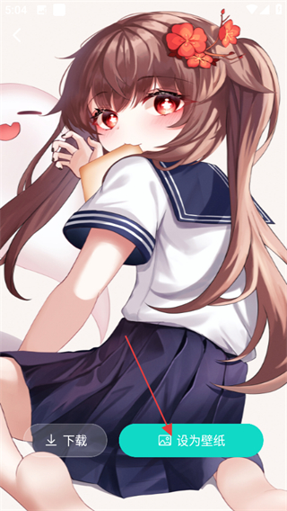3、在選中的動漫動態(tài)壁紙詳情頁,找到并點擊設為壁紙按鈕,成功應用為手機壁紙。