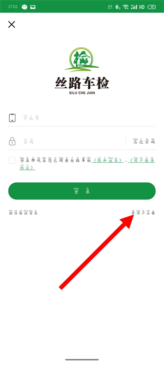 3、進(jìn)入登錄界面后,點(diǎn)擊新用戶注冊選項,跳轉(zhuǎn)到注冊頁面。