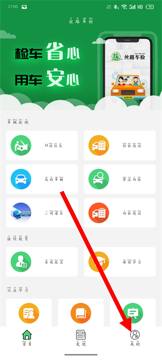 1、打開絲路車檢,點(diǎn)擊底部導(dǎo)航欄最右側(cè)的我的按鈕,進(jìn)入個人中心頁面。